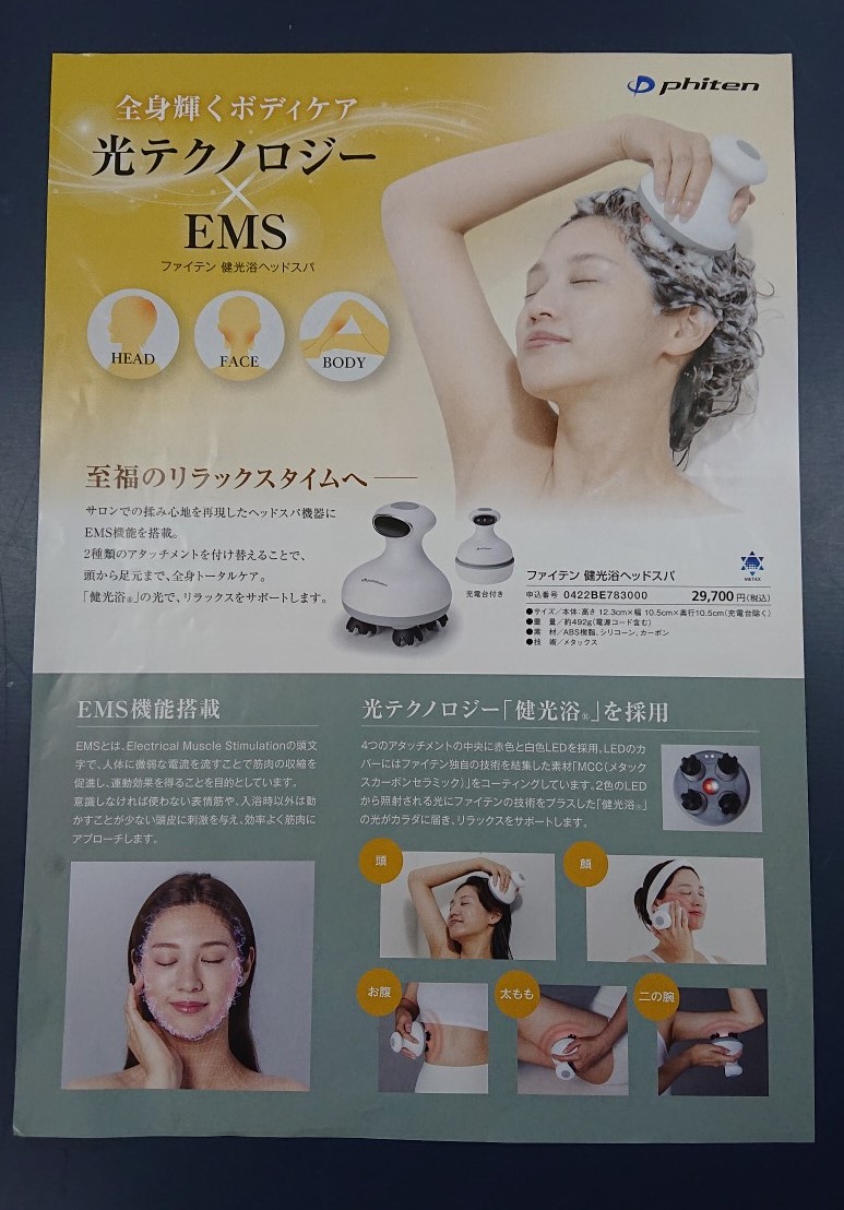 ファイテンから新しい商品がでました。その名も【健光浴ヘッドスパ】です!!
