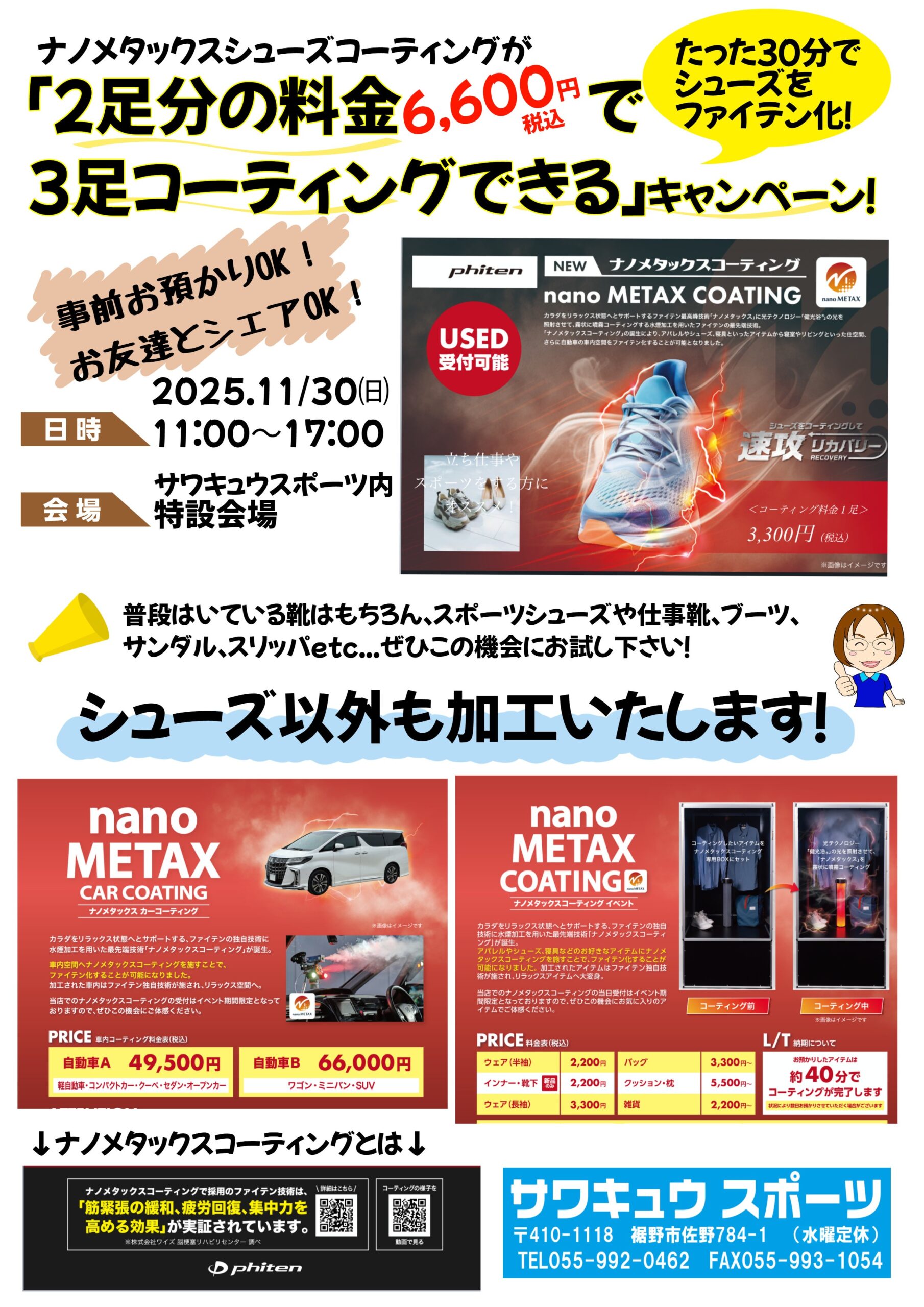 👟【11/30(日)限定!】キミのフットワークが変わる!?大好評「ナノメタックスコーティング」が超お得!