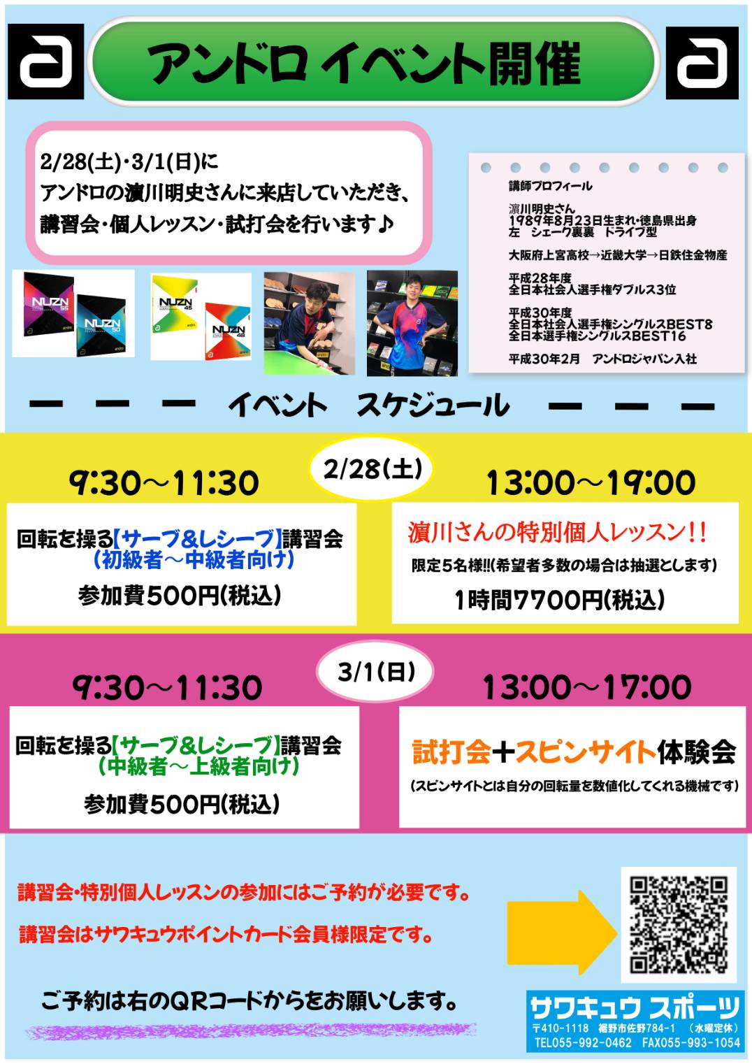 なんと、卓球メーカー「andro(アンドロ)」から、あの有名な濱川明史さんがサワキュウスポーツに来店決定!